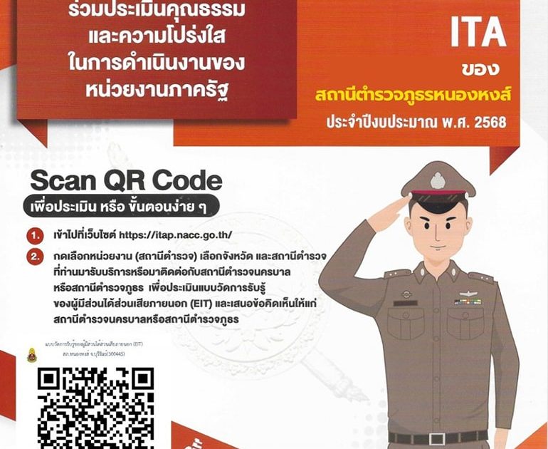 ขอเชิญผู้รับบริการ ร่วมประเมินคุณธรรมและความโปร่งใส ในการดำเนินงานของสถานีตำรวจภูธรหนองหงส์