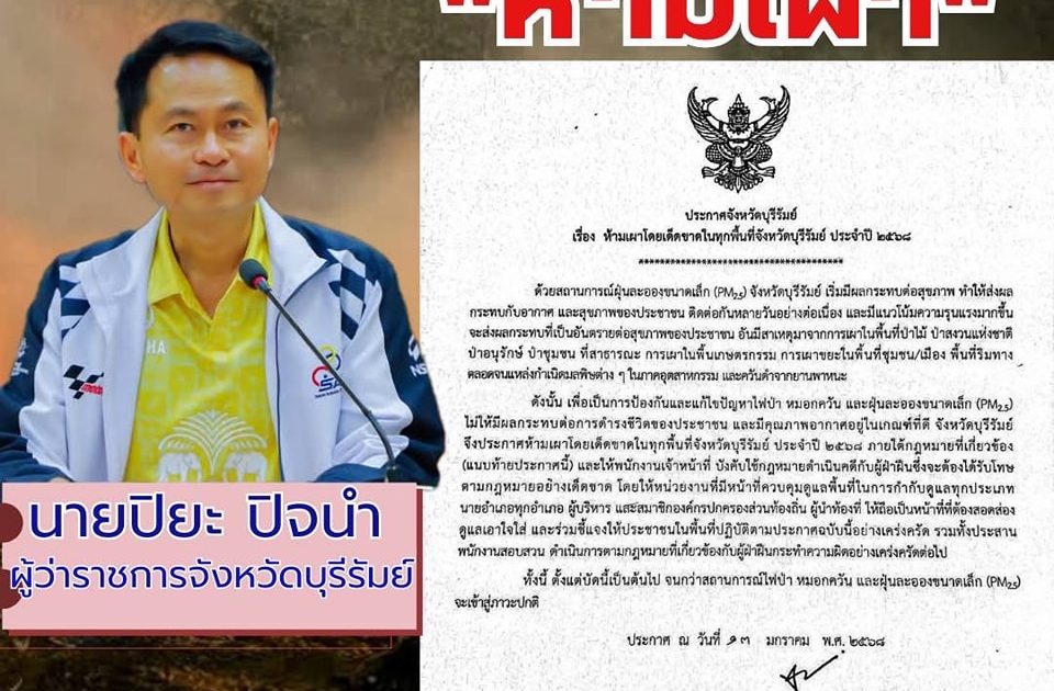 ประกาศจังหวัดบุรีรัมย์ 🔥❌ ห้ามเผาโดยเด็ดขาด❌🔥