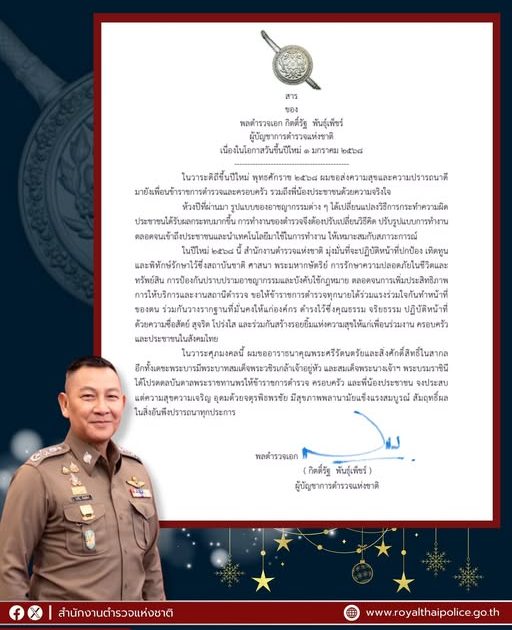 ผบ.ตร.ส่งสารอวยพรปีใหม่ 2568 ส่งความปรารถนาดีถึงข้าราชการตำรวจและพี่น้องประชาชน .