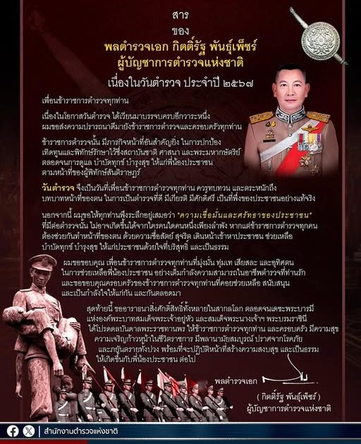 “สาร” ของ พลตำรวจเอก กิตติ์รัฐ พันธุ์เพ็ชร์ ผู้บัญชาการตำรวจแห่งชาติ เนื่องในวันตำรวจประจำปี 2567