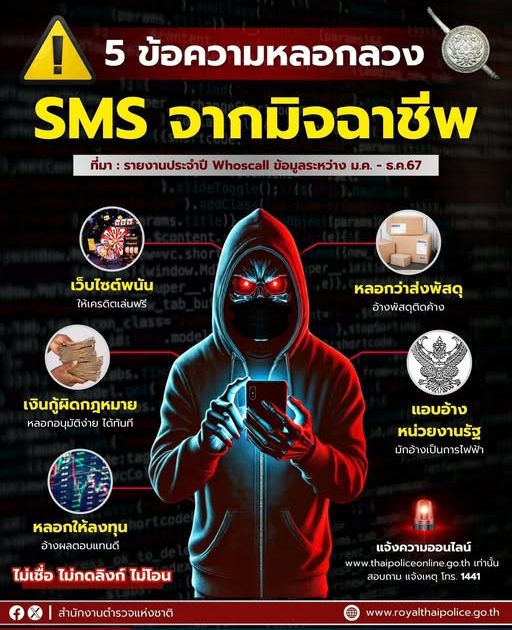 ⚠️ ระวัง 5 ข้อความ SMS ทรงมิจฯ ส่งมาหลอกให้คลิก กดลิงก์ หลอกแชต ลวงให้โอนเงิน