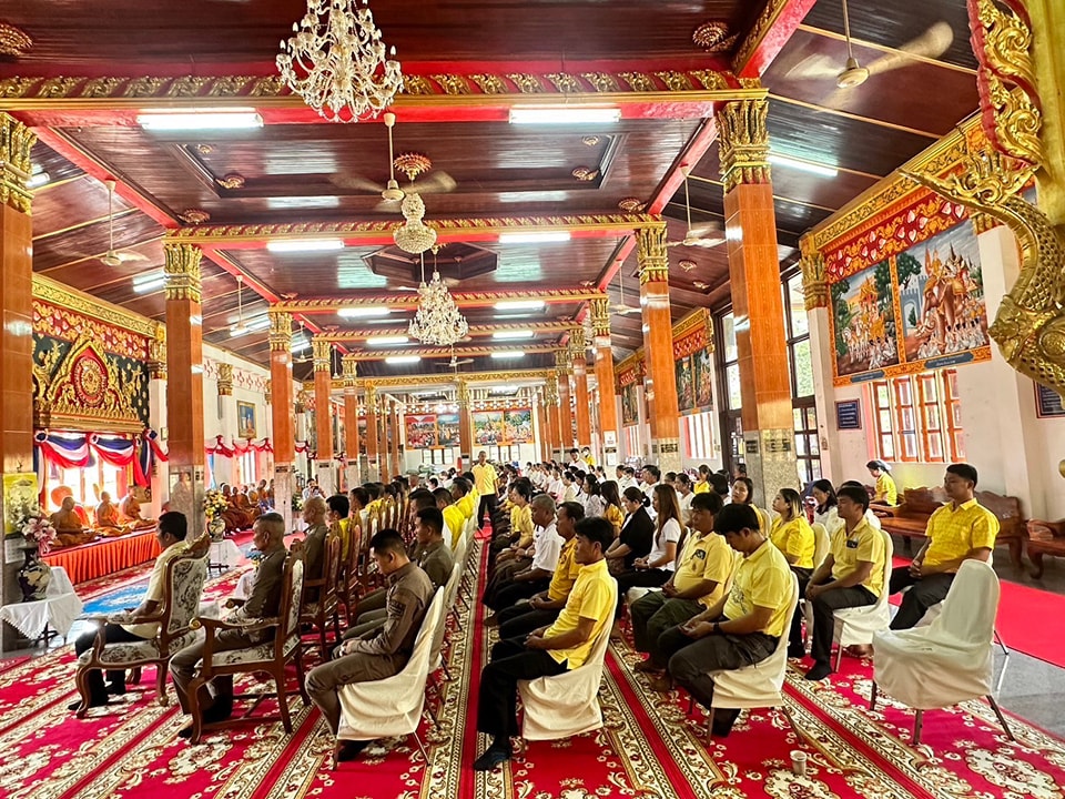 พ.ต.อ.อดิศักดิ์ จันทร์สอน ผกก.สภ.หนองหงส์ พร้อมข้าราชการตำรวจในสังกัด เข้าร่วมพิธีต้อนรับเงินขวัญถุงพระราชทานกองทุนแม่ของแผ่นดินบ้านไทยจาน ณ ศาลาการเปรียญวัดบ้านไทยจาน ต.สระทอง อ.หนองหงส์ จ.บุรีรัมย์ 6 กุมภาพันธ์ 2567 โดย adminnonghong