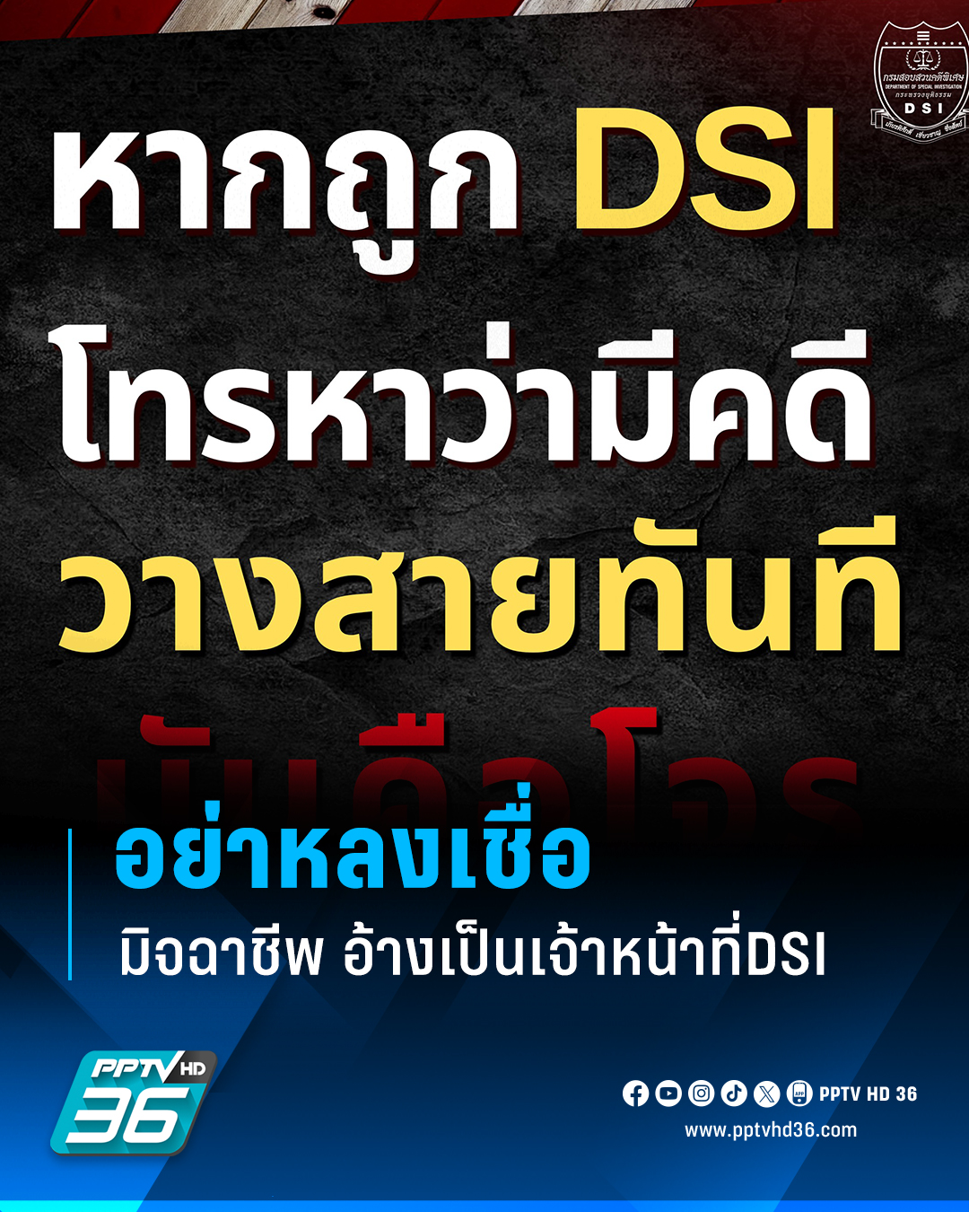 DSI เตือนอย่าหลงเชื่อกลุ่มมิจฉาชีพ อ้างตัวเป็นเจ้าหน้าที่ โทรหาเกี่ยวกับคดีฟอกเงิน ยืนยัน ดีเอสไอ ไม่ติดต่อประชาชนผ่านโทรศัพท์ หรือ ไลน์ 3 มีนาคม 2568 โดย adminnonghong