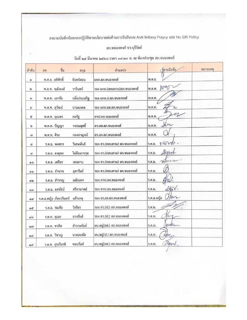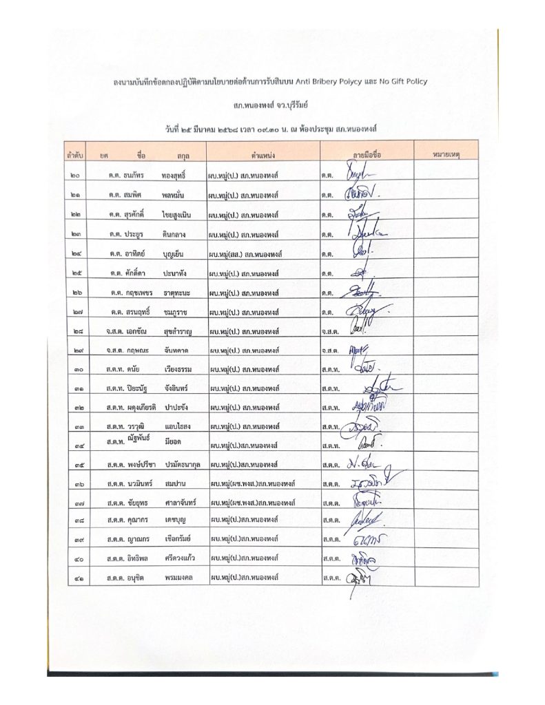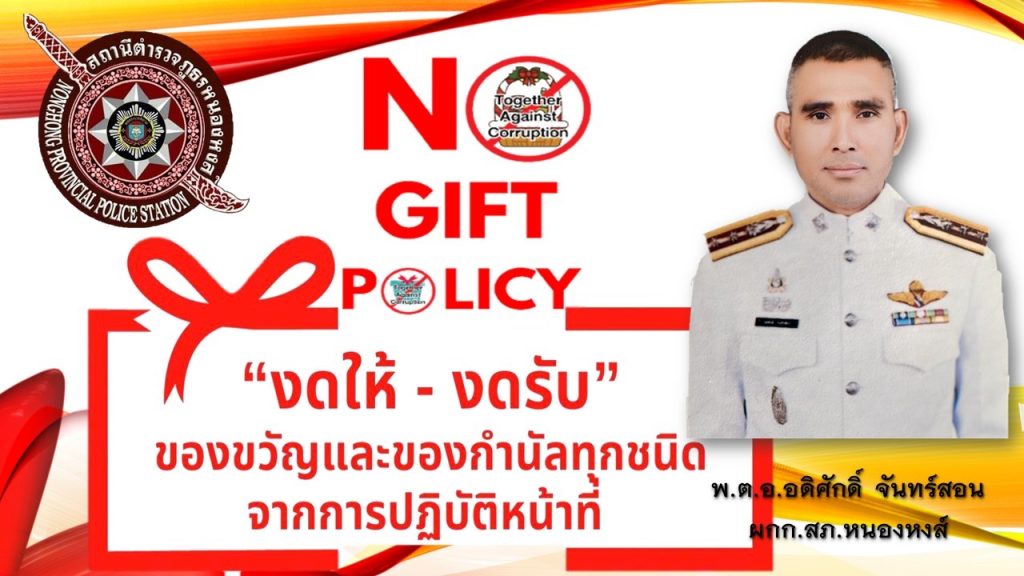 – การประกาศนโยบายต่อต้านการรับสินบน Anti Bribery Policy และการไม่รับของขวัญของกำนัล No Gift Policy ตามประกาศสถานีตำรวจภูธรหนองหงส์